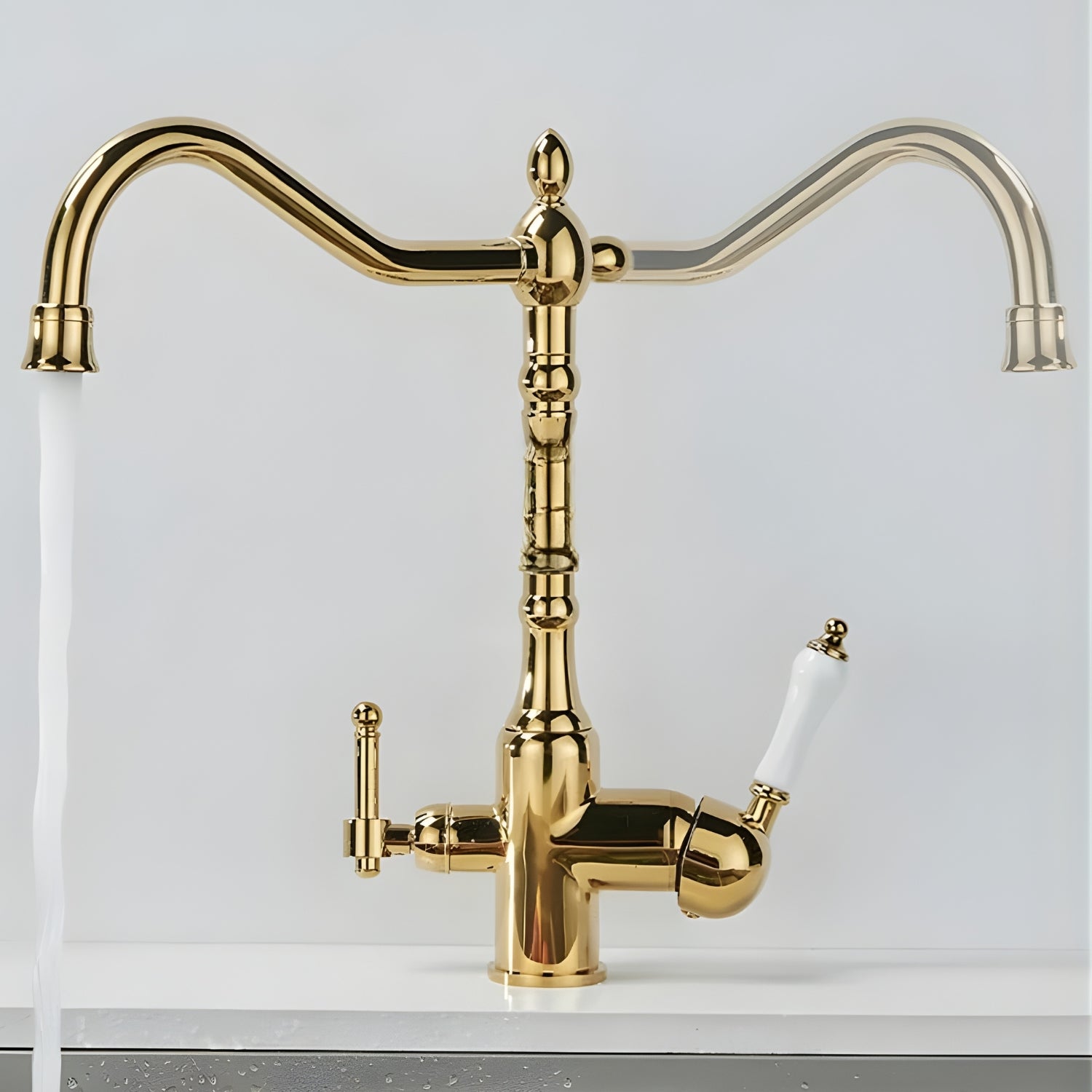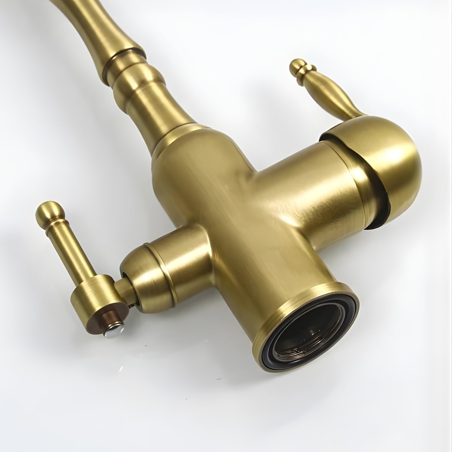 Dedicated pure water tap. Premium antique brass finish. Dual-handle precision control.