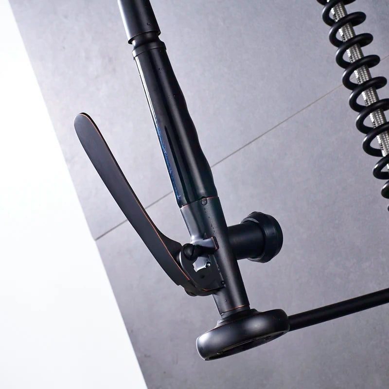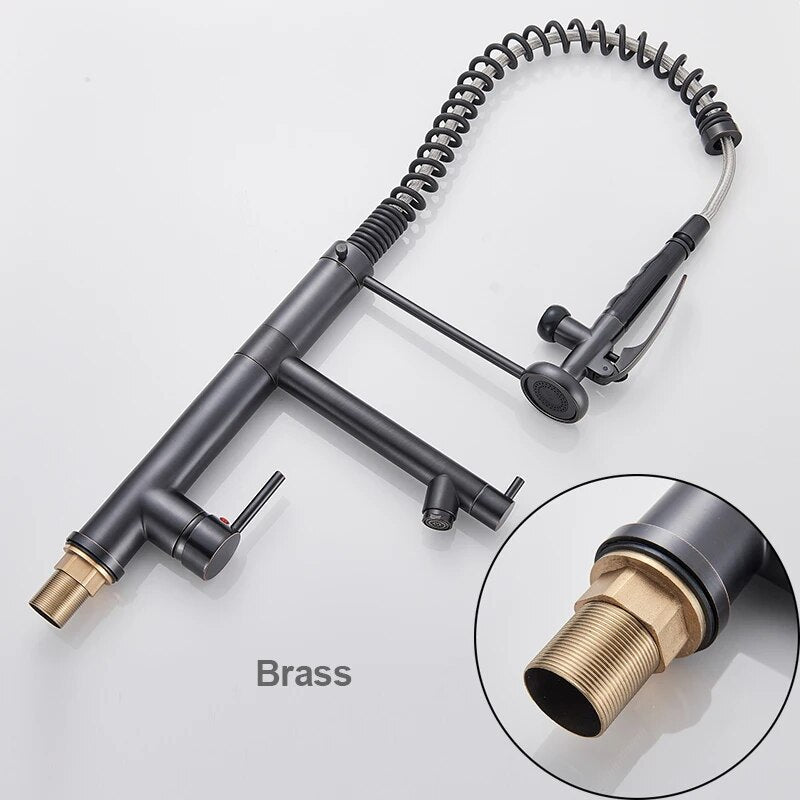 Discover the superior functionality of the Gothenburg commercial-level spring goose-neck mixer, an exceptional addition to your kitchen. Unleash the versatility of its highly flexible retractable pull-down nozzle, allowing you to precisely direct water flow wherever needed. The classic pencil handle, paired with an internal ceramic cartridge mixer, provides an effortless experience in adjusting both water temperature and flow.