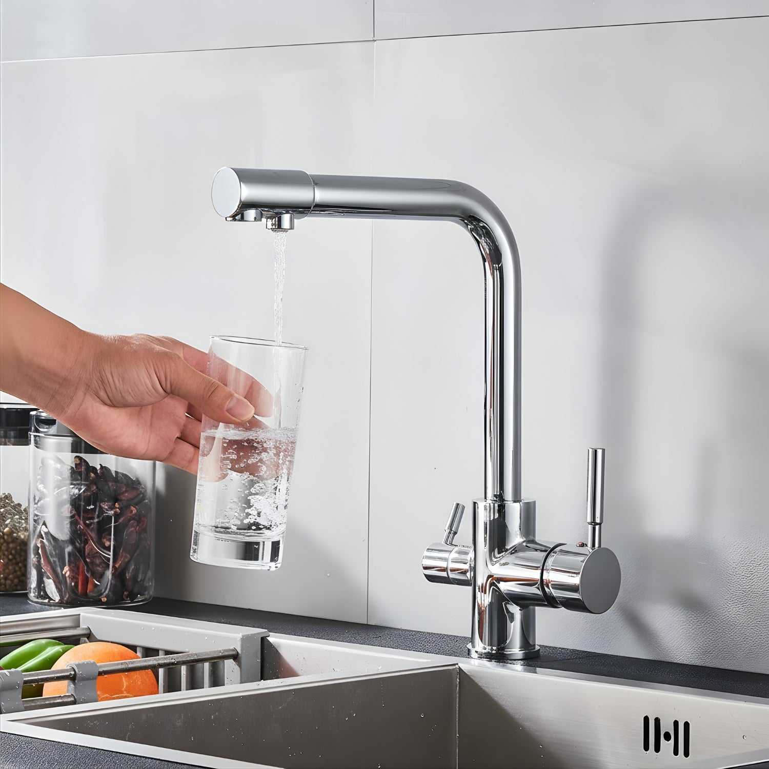 Three-Way Kitchen Faucet with Filter Tap Reverse Osmosis Filters Compatible