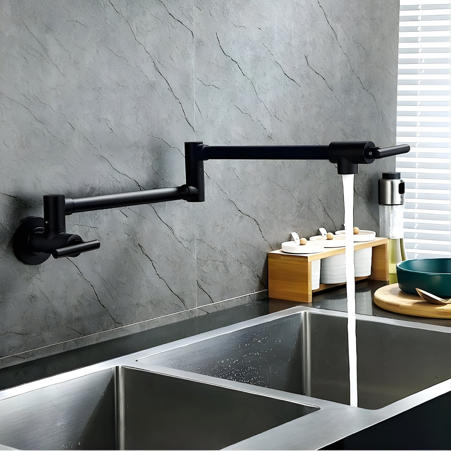 Introducing the Jorstad Wall Mounted Kitchen Faucet, a perfect blend of modern technology and exquisite design, thoughtfully created to transform your kitchen experience. This innovative pot filler is a symbol of our passion for merging sophistication with practicality, ensuring every use is both enjoyable and efficient.