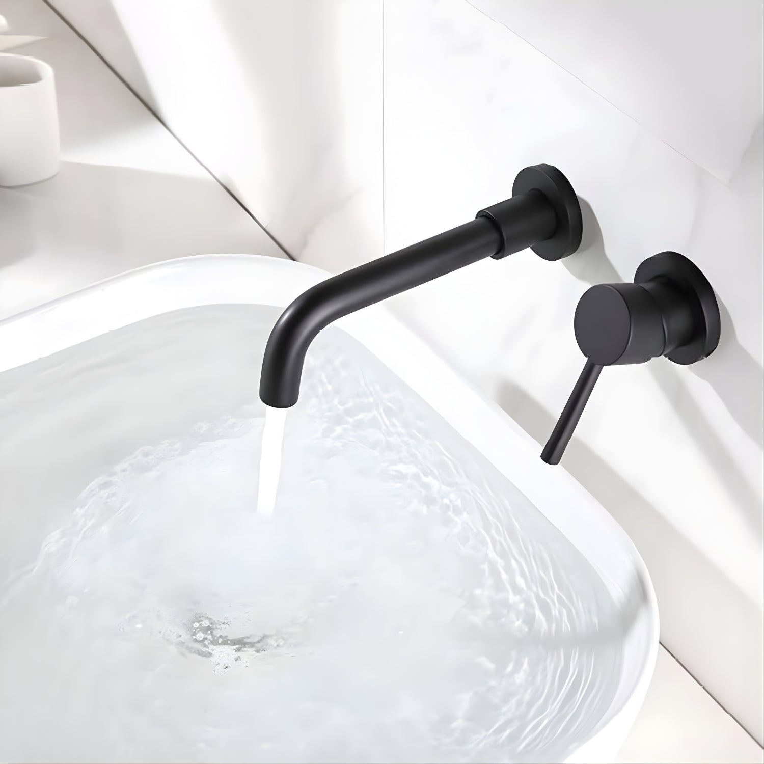 Svartan Wall-Mounted Bathroom Faucet blends sleek minimalism with functional design. Featuring a separate single handle for precise control, it offers a clean, modern look. Built for durability, its wall-mounted design saves space while adding a touch of elegance to any bathroom.